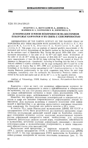 Федотов С.А., Магуськин М.А., Левин В.Е., Жаринов Н.А., Бахтиаров В.Ф., Кириенко А.П. (1988) Деформации земной поверхности на восточном побережье Камчатки и их связь с сейсмичностью // Вулканология и сейсмология. № 1. С. 24-40.