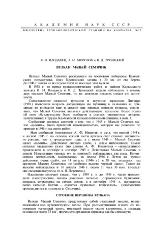 Влодавец В.И., Морозов А.И., Троицкий В.Д. (1948) Вулкан Малый Семячик // Бюлл. вулканол. станций. № 15. С. 19-27.