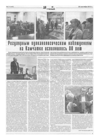 (2015) Регулярным вулканологическим наблюдениям на Камчатке исполнилось 80 лет // Дальневосточный учёный. Вып. 1531. № 17. С. 5.