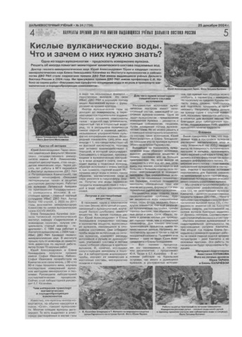 Куликова А. (2024) Кислые вулканические воды. Что и зачем о них нужно знать? // Дальневосточный учёный. Вып. 1756. № 24. С. 5.