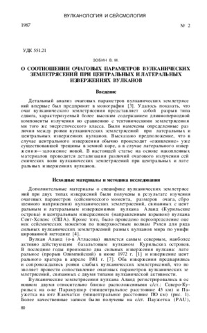 | Название: | О соотношении очаговых параметров вулканических землетрясений при центральных и латеральных извержениях вулканов |